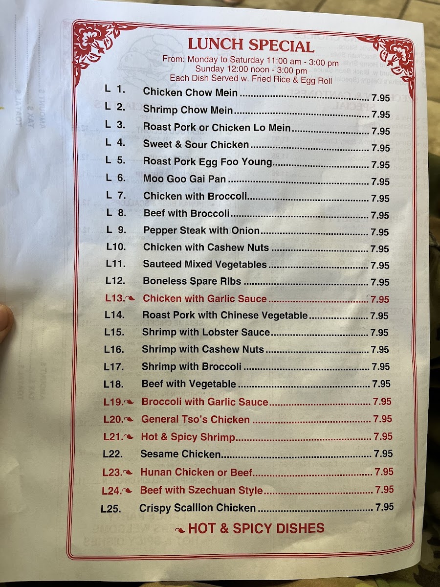 Many items are designed to be enjoyed on the go or while waiting briefly, fitting the carry-out style of the kitchen. Appetizers such as steamed or fried dumplings and crispy egg rolls offer a simple yet pleasing start, while main dishes like Szechuan Chicken or Boneless Ribs pair well with a side of fried rice or vegetables for a balanced meal. The atmosphere, though limited in seating, encourages customers to settle into a relaxed, no-frills experience where the focus is clearly on the food.